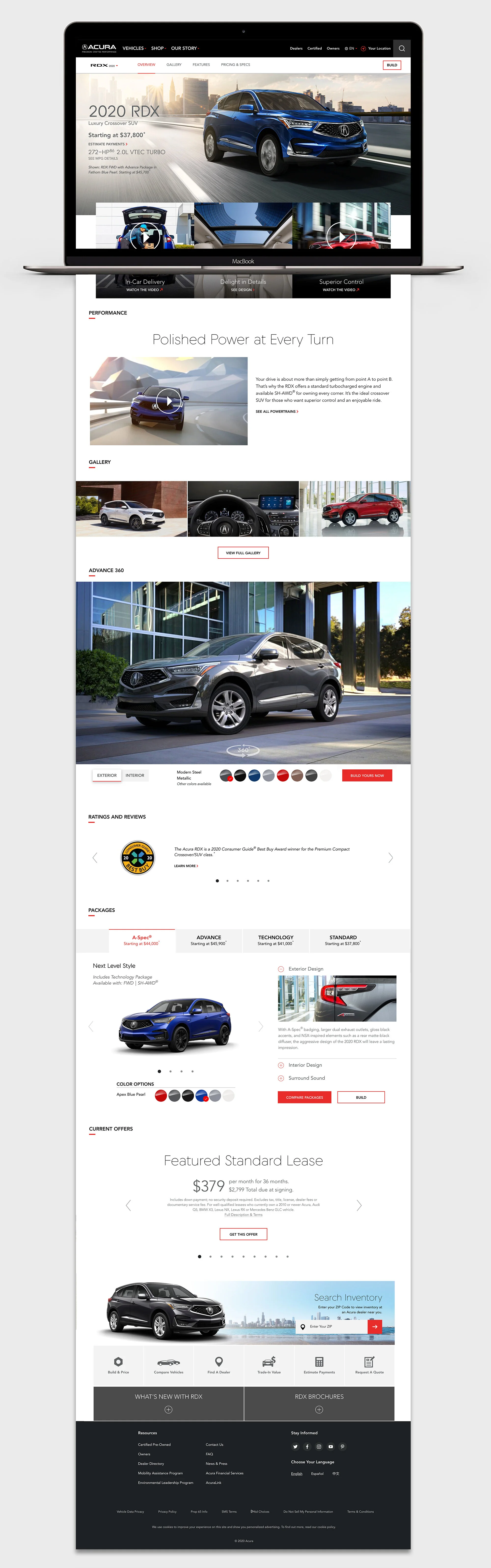 With the Acura website, we took over a site that was ranked below average on JD Power, and made it into the top rated luxury vehicle website in 2019. It wasn’t a redesign or an overhaul, it was a make it work and don’t break it. To make any changes, we could only utilized existing components throughout the site. We had to be smart about what we did and have a purpose behind it. It was truly a work within the box project.